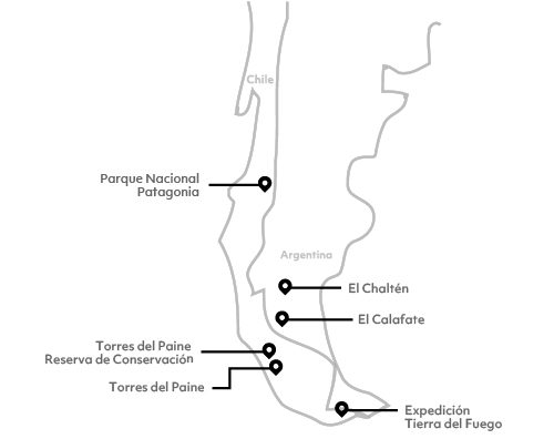 Nuestra red exclusiva conecta cinco lodges en Chile y Argentina y una expedición a Tierra del Fuego, para acceder a los rincones más inexplorados en un auténtico viaje multi-destino.