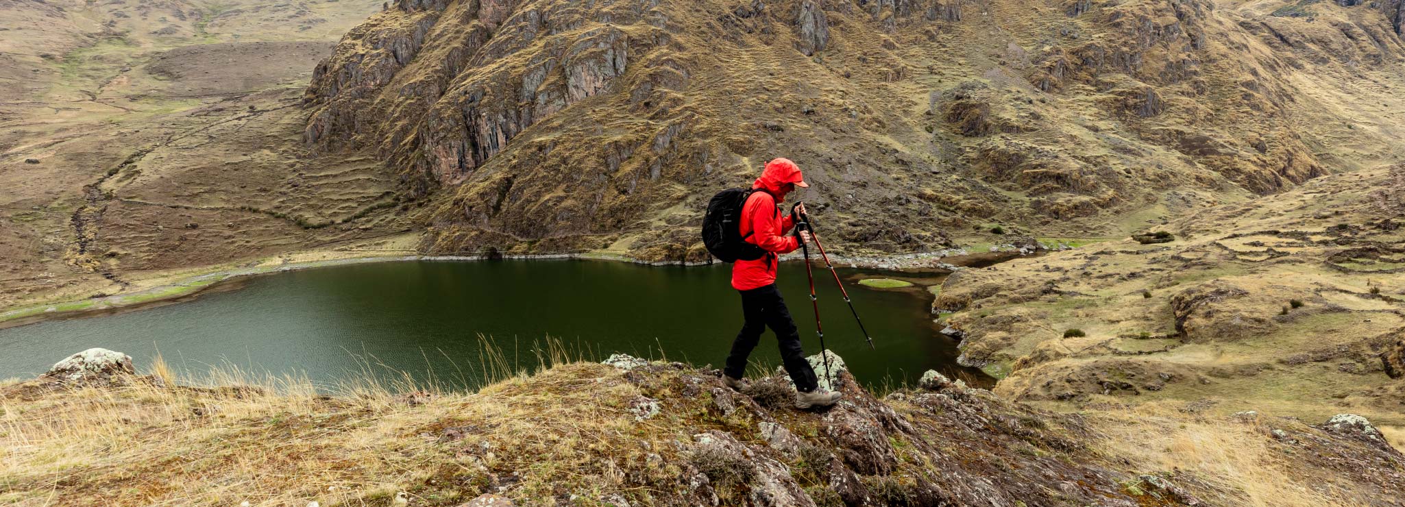 Explora proporciona a los viajeros bastones de trekking, cascos y polainas para cabalgatas, y les entrega una botella de agua.