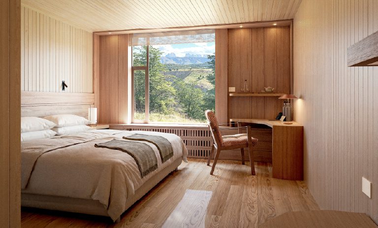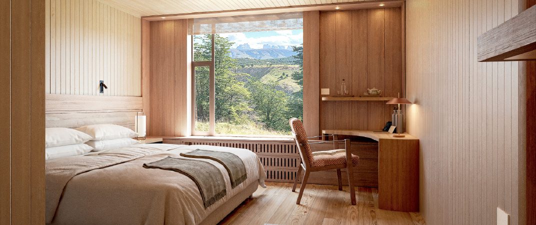 Set withing the vast Patagonian wilderness, Explora Torres del Paine Conservation Reserve offers an intimate sanctuary where wonder and tranquility meet. Designed to make travelers feel at home within Patagonia’s immensity, the lodge features just ten rooms, thoughtfully created spaces, panoramic views of the Torres del Paine peaks rising beyond the steppe – all framed by its striking, impressive architecture.