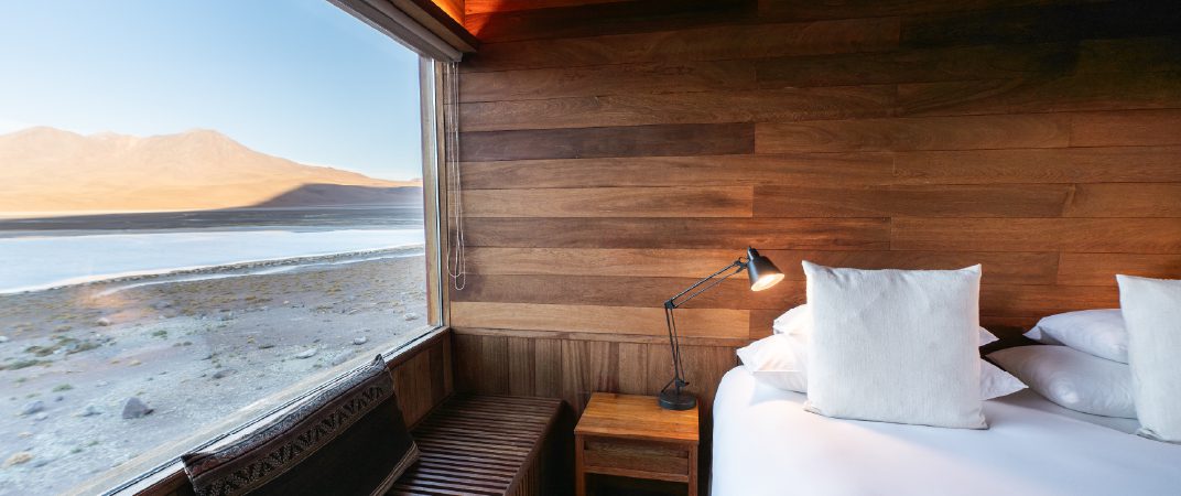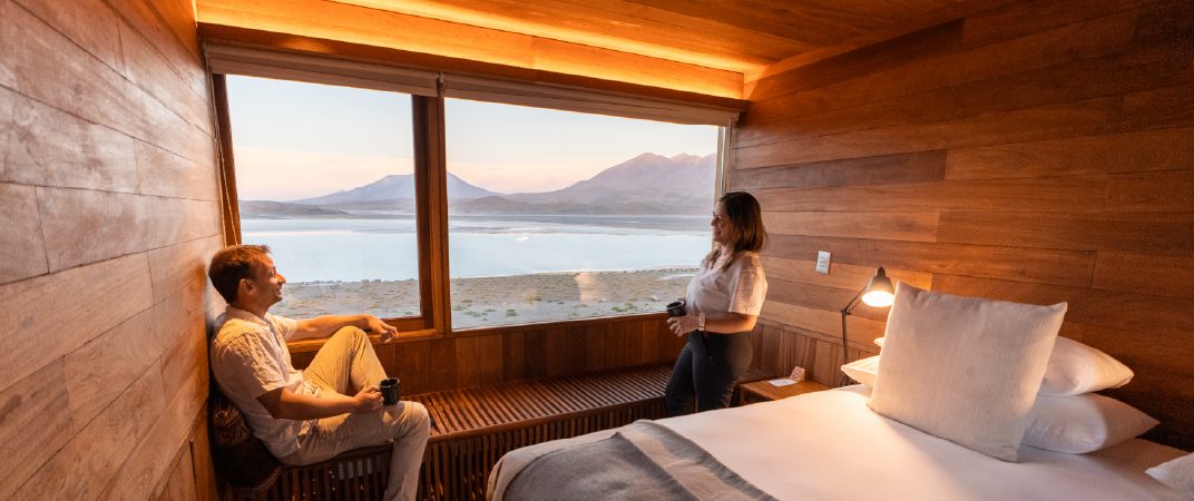 On Travesía Atacama-Uyuni, adventurous days between Chile and Bolivia on the remote and rugged Altiplano are rewarded with comfort, relaxation and deep rest at a strikingly designed Explora Lodge. Discover the 50-room Explora Atacama in Chile’s famed high-altitude desert before crossing into Bolivia for one-of-a-kind overnights at our three intimate mountain lodges, Explora Ramaditas Mountain Lodge, Explora Chituca Mountain Lodge and Explora Jirira Lodge. Each offers just four to six rooms and a setting amid the volcanoes and high-altitude lagoons of the Altiplano.